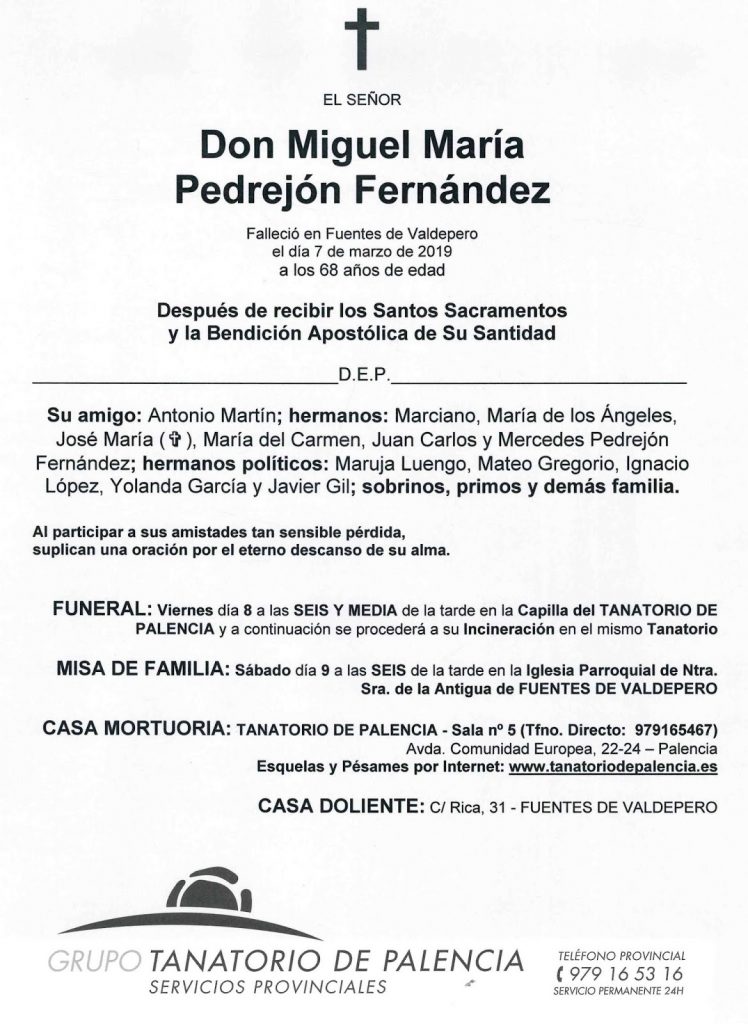 FALLECIMIENTO DE MIGUEL PEDREJÓN FERNÁNDEZ