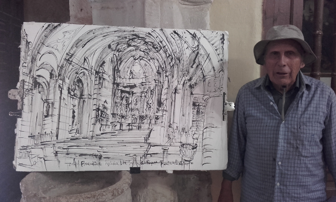 El pintor catalán Joan Bueno Casadesús visitó Fuentes de Valdepero este pasado domingo, y más en concreto la iglesia parroquial Nuestra Señora la Antigua.